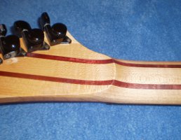 Sometime an instrument with a headstock falls, and sometimes the headstock snaps off. That sucks a lot. This happens mainly with headstocks that are the same piece of wood as the neck. The grain of the wood goes in the same direction as the neck and it's very stiff that way, but since the headstock angles back, the ends of the grain become exposed as in the picture. The bonds between the grains bend and separate comparatively easily, so the headstock is prone to breaking off, especially since it's already got all the string tension pulling it.