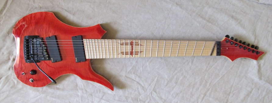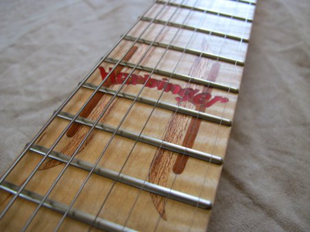 Inlay: Glow-in-the-dark side dot markers, Hampton Harmony with "Harbinger" centered on 12th fret